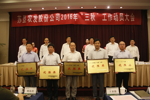 9月25日,蘇墾農發(fā)股份公司在南京召開(kāi)2016年“三秋”工作動(dòng)員大會(huì )。省農墾集團公司總經(jīng)理、蘇墾農發(fā)股份公司董事長(cháng)胡兆輝主持會(huì )議并講話(huà)。省農墾集團公司黨委委員、蘇墾農發(fā)股份公司總裁蘇志富講話(huà)。蘇墾農發(fā)股份公司副總裁許峰作“三秋”工作部署。