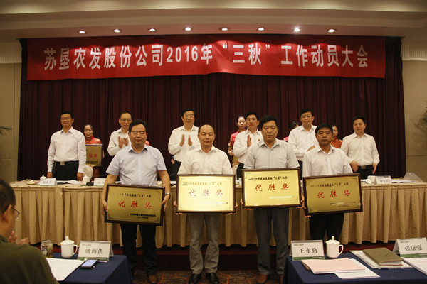 許峰副總裁分析了去年“三秋”及今年“三夏”工作的經(jīng)驗與教訓,研判了2016年農業(yè)生產(chǎn)形勢,提出了“三秋”工作任務(wù)、目標和措施,強調了“三秋”工作的組織領(lǐng)導、統籌協(xié)調,重點(diǎn)對關(guān)鍵技術(shù)和管理措施進(jìn)行了部署。